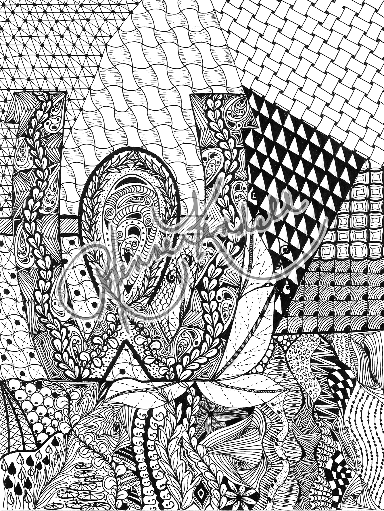 All Letters are drawn on mixed media cardstock with Micron Pigma Ink Pens.